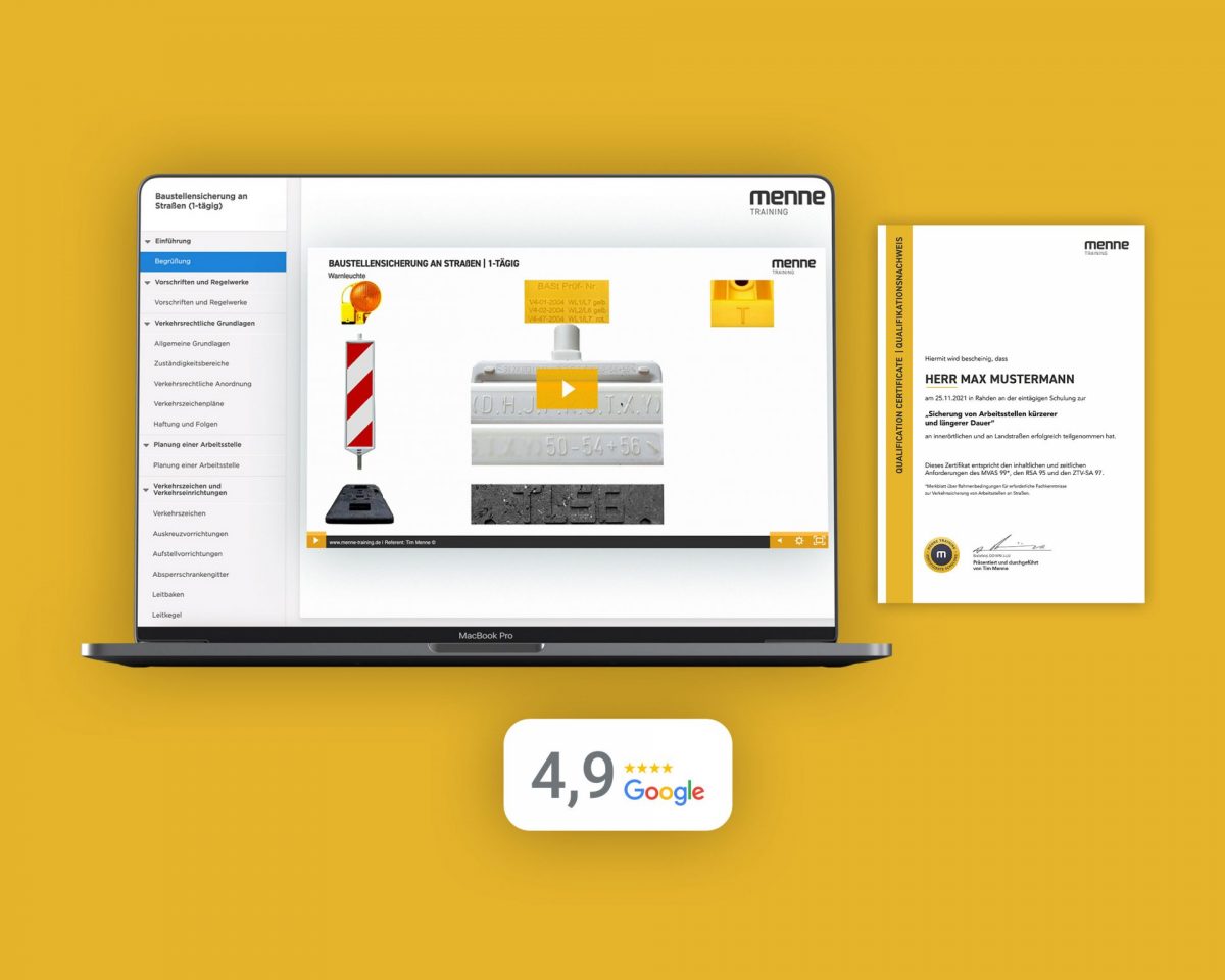Unser E-Learning Kurs zum Thema Baustellensicherung an Straßen (RSA 21) gibt Ihnen die Möglichkeit, Ihr Wissen zu erweitern und aktuelle Normen zu verstehen. Erfahren Sie, wie Sie eine Baustelle sicher planen, um einen reibungslosen Ablauf zu gewährleisten.
